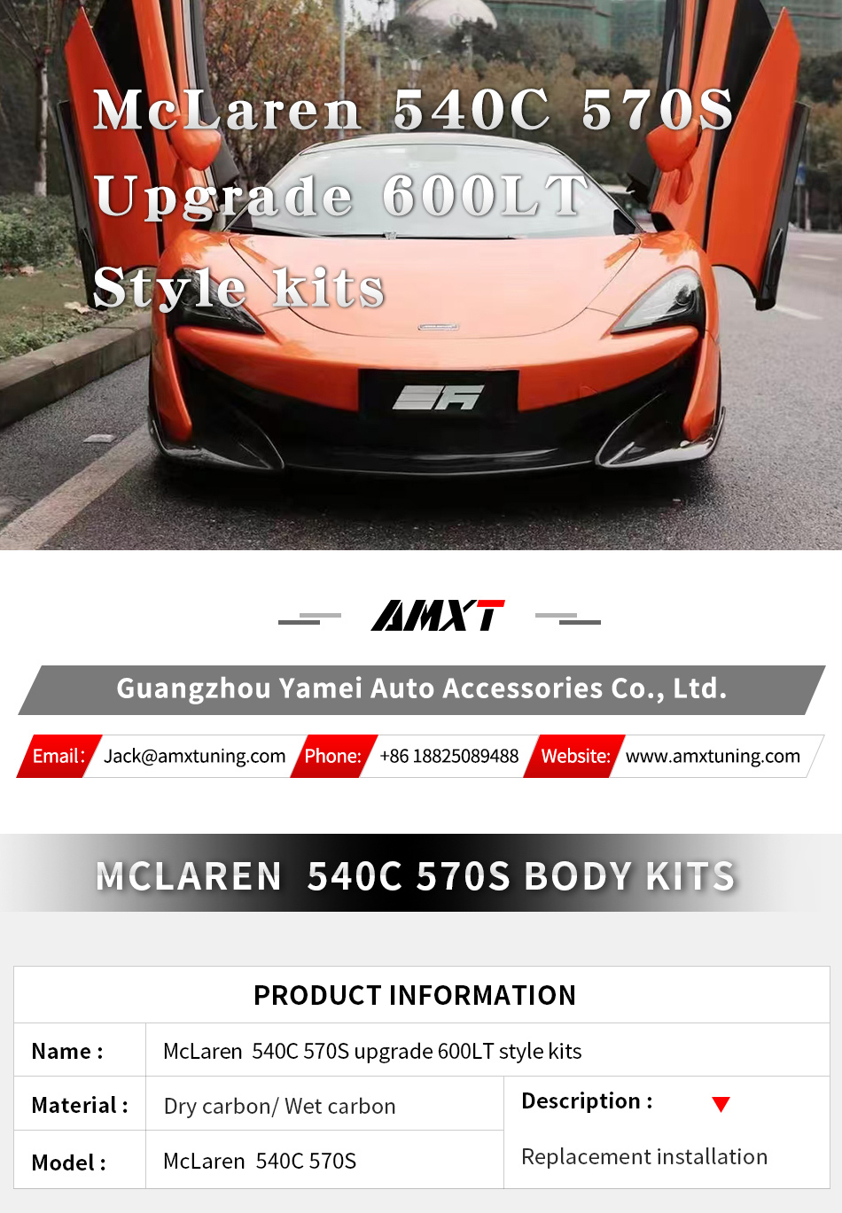 570S Upgrade 600lt bodykit overall style is sporty and fashionable. Made of dry carbon material, with good quality and clear texture, lightweight and hard. One to one product, good fit.