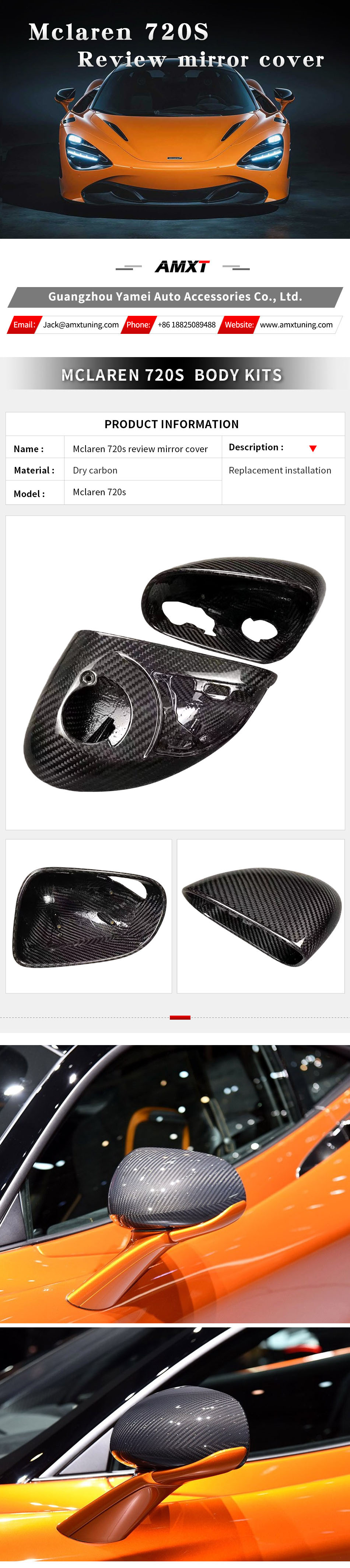 720S Dry Carbon Fiber OEM Style Review Mirror Cover High Quality Fast Delivery Whole Sale Price Body Kits for Mclaren 720S