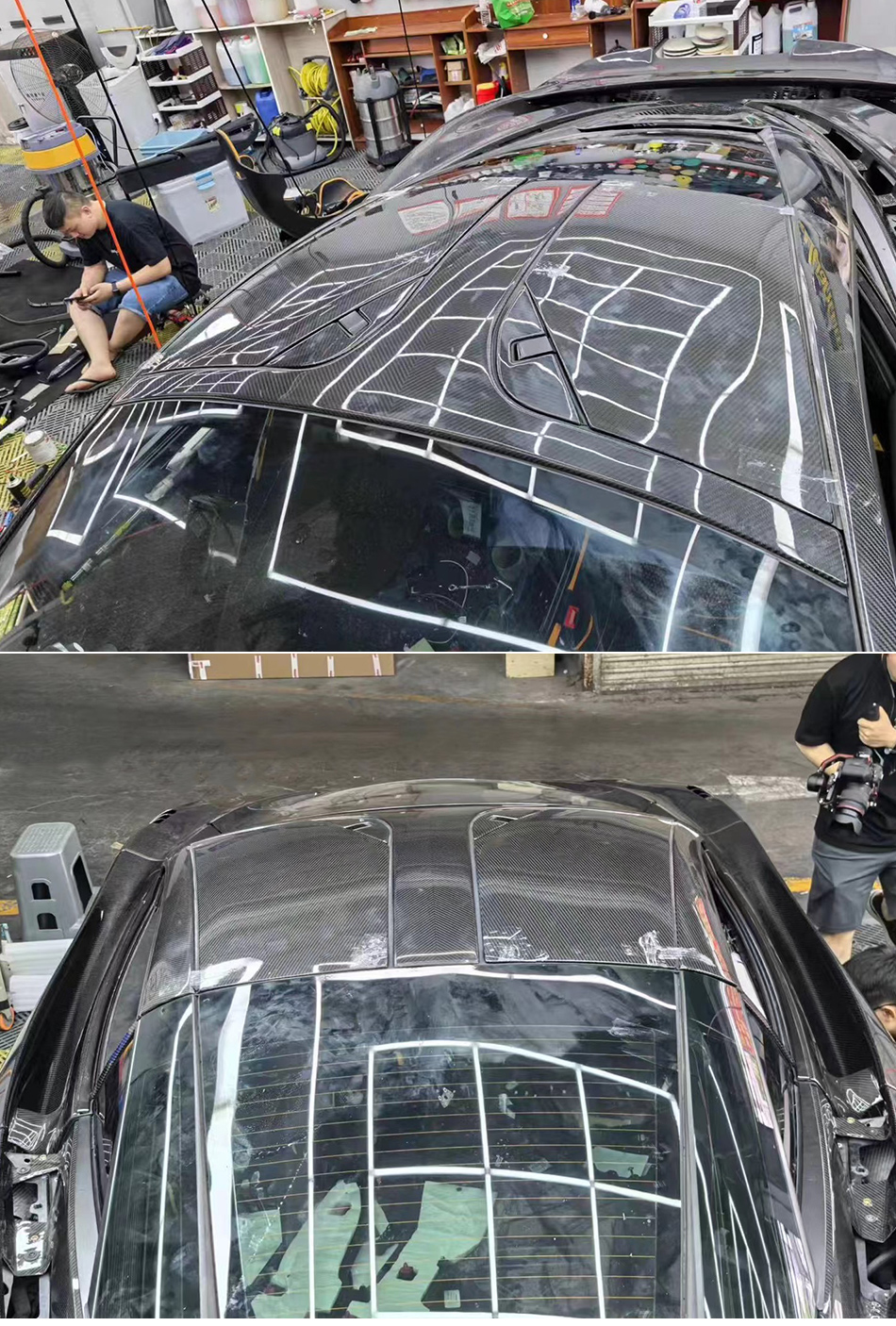 The 720S roof panel is made of dry carbon material, which is resistant to high temperatures, not easily deformed or cracked, with clear and beautiful patterns and good adhesion.