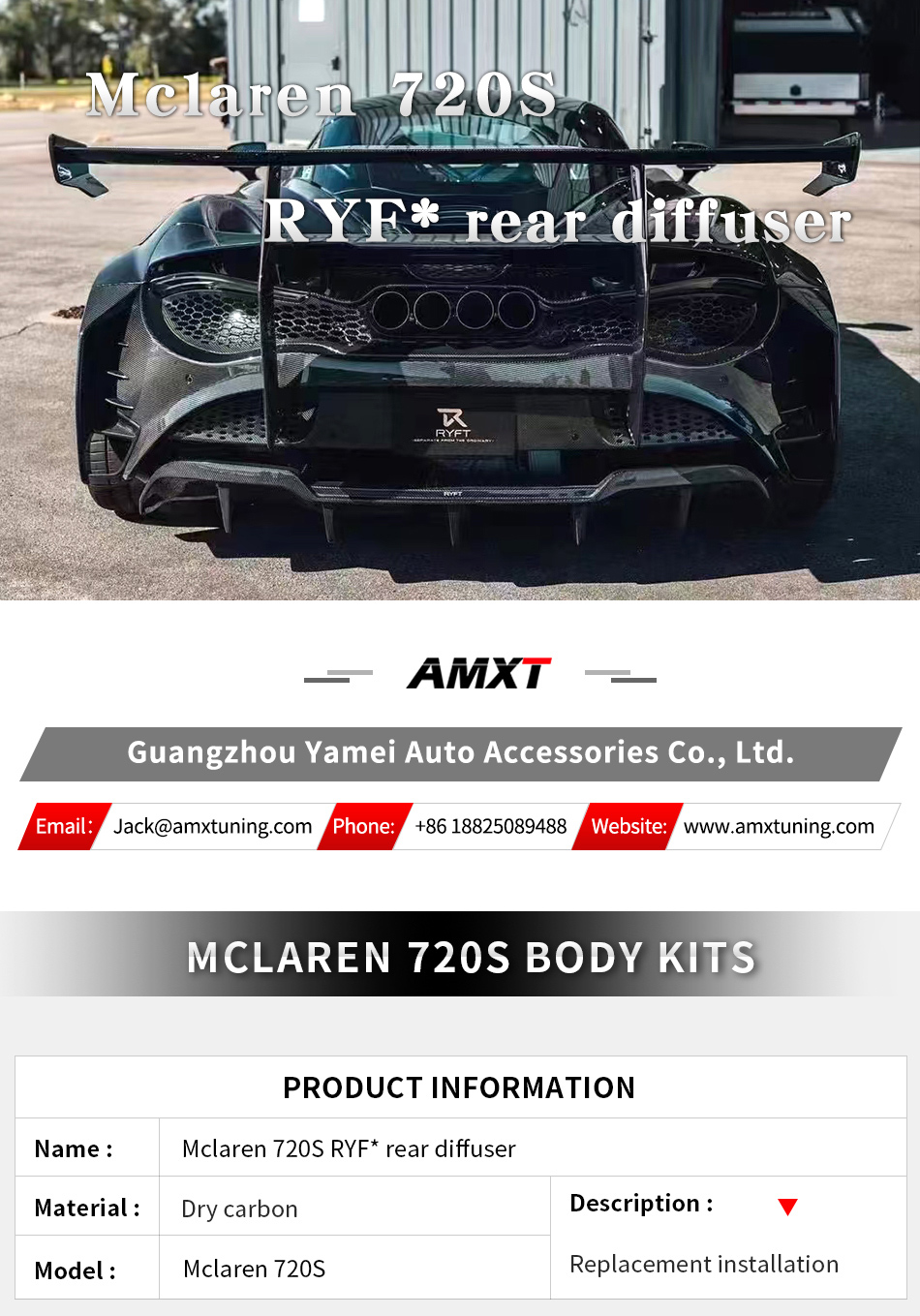 High Quality Fast Delivery Whole Sale Price Dry Carbon Fiber RYFT Rear Diffuser Body Kits for Mclaren 720S