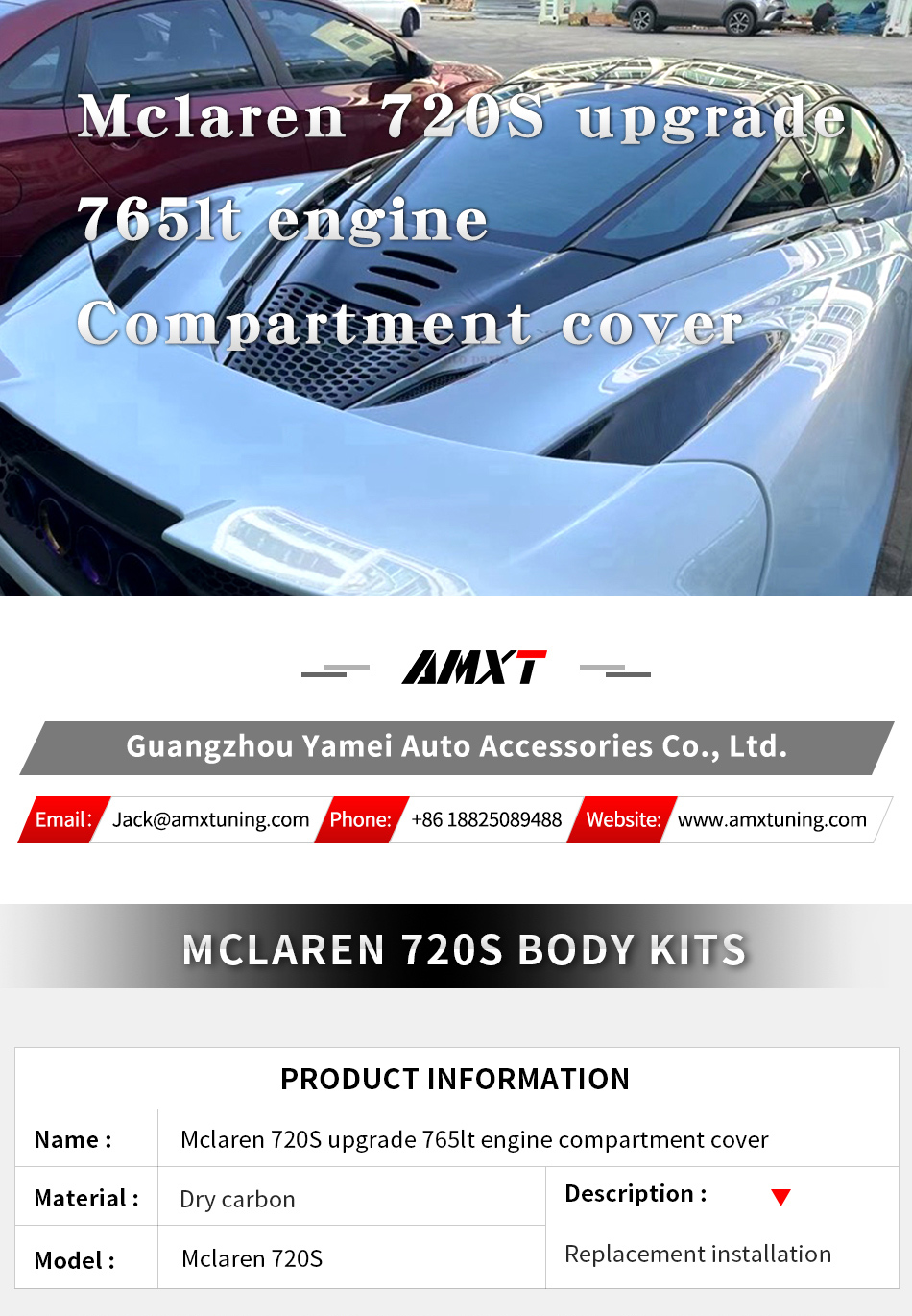 720S Upgrade 765lt Engine Compartment Cover High Quality Fast Delivery Whole Sale Price Dry Carbon Fiber Body Kits for Mclaren 720S