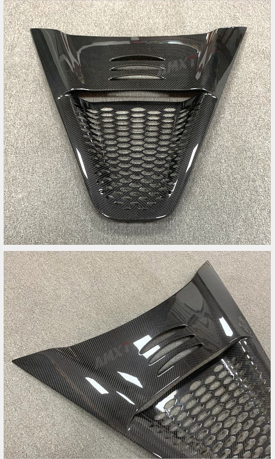 The rear engine cover made of dry carbon material is lightweight, with higher hardness and clear and beautiful patterns. One to one product, good fit, and excellent upgrade performance.